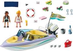 Ovaj set PLAYMOBIL poziva vas na puno romantičnih trenutaka i sati zabave. Nakon romantičnog svadbenog slavlja, mladenci kreću na medeni mjesec, a vožnja motornim čamcem po moru obećava nezaboravna iskustva.