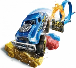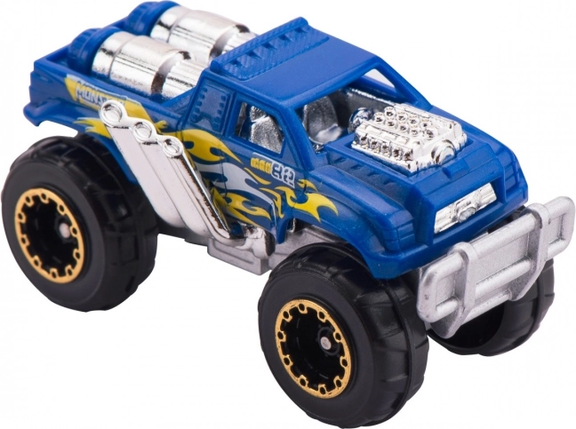 Igračka dolazi s monster truckom s velikim kotačima i izraženim detaljima, spremnim za prelazak preko prepreka.