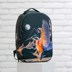 Dizajn ruksaka krasi motiv vodomara u letu, zajedno s apstraktnim oblicima i mjesecom. Ovaj upečatljiv tisak čini ruksak središtem pozornosti.