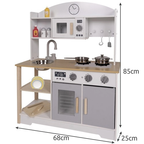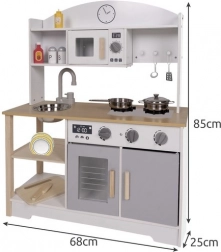 VISOKA KVALITETA - kuhinjica je izrađena od kvalitetnog drva, što značajno utječe na trajnost upotrebe te sigurnost i zdravlje najmlađih. To je bezvremenski dizajn koji će razveseliti svakog mališana. Zbog klasičnog izgleda uvijek je bila visoko cijenjena. Iznimno pažljiva izrada uz estetsku izvedbu i naglasak na najsitnijim detaljima daje proizvodu dodanu vrijednost i ugodu za oko. Kuhinjica može uspješno imati i dekorativnu funkciju te biti ukras dječje sobe.