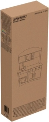 Pribor za malog kuhara - uz set dodajemo: lonac, tavu i poklopac, dasku za rezanje, 2 tanjura, nož, kutljaču, lopaticu, sol, papar, senf, kečap. Sudoper u kuhinjici je odvojiv; dijete/roditelj ga može nakon igre napuniti vodom i oprati „prljavo” posuđe.