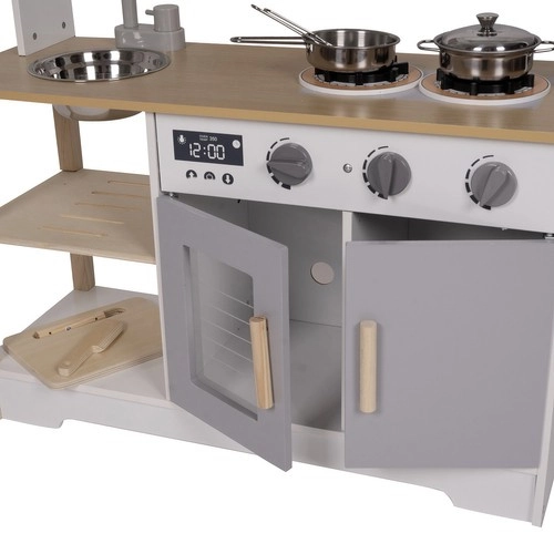 ANALOGNI SAT + Zvukovi - analogni sat nalazi se u visini djetetovih očiju, kazaljke su pomične pa se dijete može učiti gledati na sat, plamenici na kuhinjici i mikrovalnoj pećniciklikću pri okretanju brojčanika! Vaše će dijete biti oduševljeno - kuhinjica mu omogućuje sate bezbrižne igre.