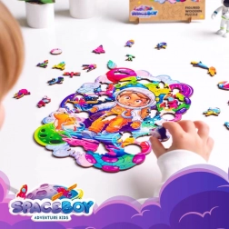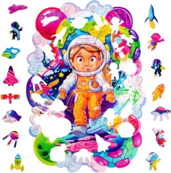 Drvene puzzle Svemirski avanturist sa 120 dijelova nude djeci zabavno i obrazovno putovanje u svemir. Idealne su za razvoj njihove mašte i logičkog razmišljanja.