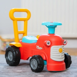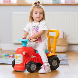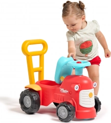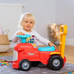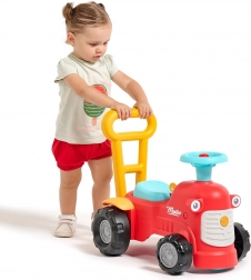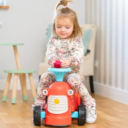 Stojeći iza traktorčića, djeca mogu koristiti ergonomske oslonce za učenje hodanja na razigran i siguran način. Ispod sjedala nalazi se mali spremnik za dragocjenosti.