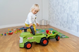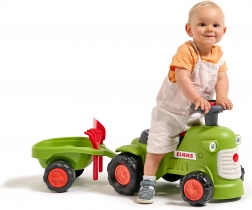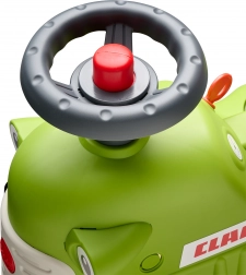 Dječja guralica u stilu traktora CLAAS razveselit će male vozače ergonomskim sjedalom s naslonom, funkcionalnim volanom s trubom i priključnom prikolicom s grabljicama i lopaticom. Proizvedeno u Francuskoj od kvalitetne, vrlo otporne plastike s 50 % recikliranih materijala, testirano prema europskim normama do 30 kg.