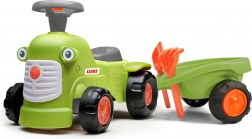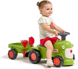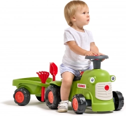 Otkrijte robusnu guralicu u dizajnu poznatog poljoprivrednog brenda CLAAS u svjetlozelenoj boji. Djeca će zavoljeti jednostavno upravljanje pomoću volana s trubom, a roditelji će cijeniti sigurno i stabilno izvođenje. Prikolica nudi prostor za igračke i opremljena je praktičnim dodacima – grabljicama i lopaticom.