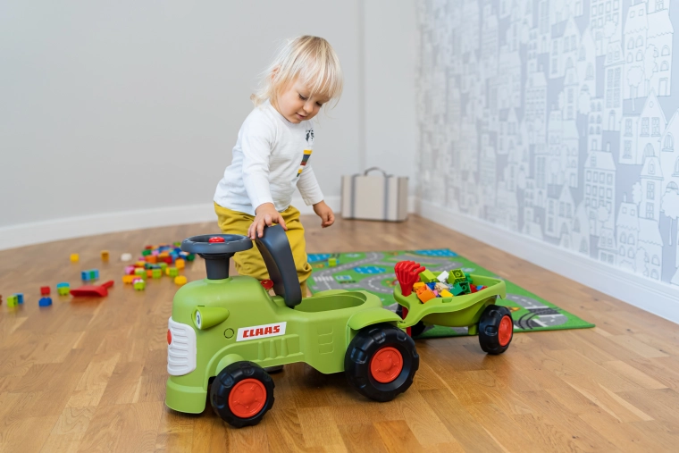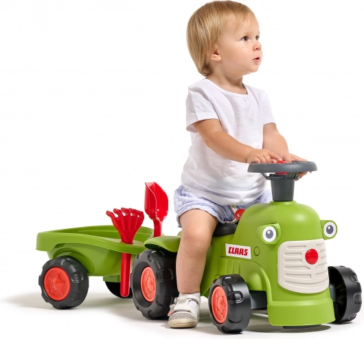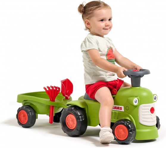 Dječja guralica u stilu traktora CLAAS razveselit će male vozače ergonomskim sjedalom s naslonom, funkcionalnim volanom s trubom i priključnom prikolicom s grabljicama i lopaticom. Proizvedeno u Fr... Prikaži više