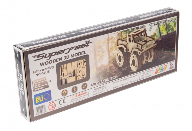 Otkrijte čaroliju mehaničkih drvenih modela: ovaj 3D puzzle monster truck sklapa se bez ljepila i vijaka, brzo je za izradu i idealan za početnike i napredne. Uživajte u kreativnoj zabavi, jednostavnoj montaži i detaljnoj izradi od brezove šperploče. Gotov model je izvrsna dekoracija i poklon za ljubitelje MONSTER TRUCKOVA.