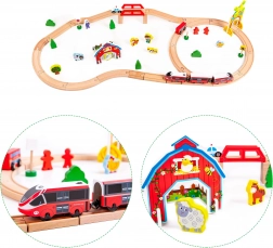 Set sadrži 53 elementa koji djeci omogućuju slobodno slaganje različitih scenarija, a karakter cijelog seta podsjeća na farmu. Figurice koje prikazuju životinje nadopunjene su farmom i vjetrenjačom ispod koje vlak može proći. Ova željeznica ne samo da zabavlja, već i uči djecu o životu na selu.