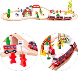 Drvena željeznica je bezvremenska igračka koja već generacijama osvaja srca djece i roditelja diljem svijeta. Simbol je klasične kreativne igre koja ne gubi na vrijednosti. Uz set Ecotoys djeca mogu ponovno otkriti čaroliju ove kultne igračke – graditi pruge, stvarati jedinstvene scenarije i postati mali strojovođe. Ovaj jedinstveni drveni set savršeno spaja tradiciju i modernost kombiniranjem klasičnih elemenata s inovativnim rješenjima poput vlaka na baterije.