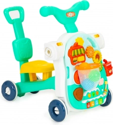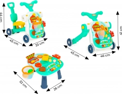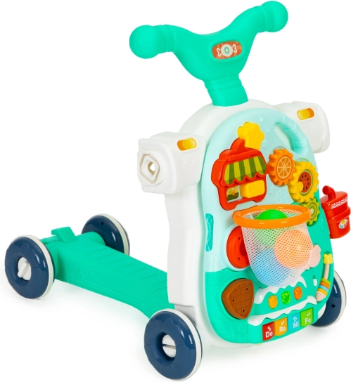 Guralo možete lako pretvoriti u stol jednostavnim odspajanjem edukativnog panela od konstrukcije guralice i ugradnjom nogu. Tako vaše dijete dobiva stolić koji ga potiče na igru i time razvija njegove manuelne vještine.
