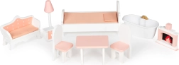Sastoji se od 9 šarenih drvenih komada namještaja: lampa, krevet, ormar, kamin, stol, dvije stolice, sofa, kada.