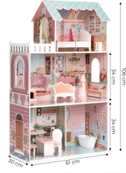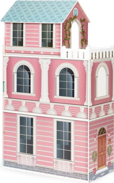 Predstavljamo veliku kućicu za lutke od ECOTOYS, koja je savršeni odraz pravog doma. Kućica ima 3 neovisna kata i 5 prostranih soba, uključujući gornju terasu, što omogućuje slobodnu igru s manjim i većim lutkama. Djeca se mogu zabavljati aranžiranjem i preuređenjem namještaja prema svojoj mašti.