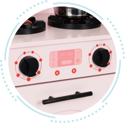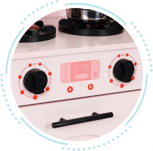 Rotirajući gumbi na kuhinjici omogućuju simulaciju kuhanja na štednjaku i u pećnici. Djeca tako dobivaju siguran prostor za svoje kulinarske eksperimente.