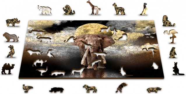 Drvene puzzle Slonovi snovi brenda WOODEN CITY donose zabavu i izazov za ljubitelje puzzli. Ove puzzle izrađene su od visokokvalitetne HDF ploče od drvenih vlakana i sadrže laserski izrezane dijelove koji osiguravaju glatke rubove bez iverja. Obostrani dizajn omogućuje slaganje prema slici ili prema oblicima.
