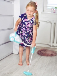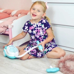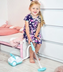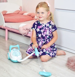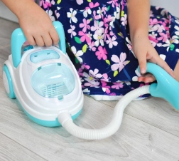 Ovaj plavo-bijeli dječji usisavač vjerno imitira pravi kućanski aparat – nakon uključivanja svijetli, proizvodi realistične zvukove i zahvaljujući funkciji usisavanja može usisati i priložene polistirenske kuglice. Izvrstan je za igru uloga, potiče odgovornost i na zabavan način uči djecu održavanju reda.