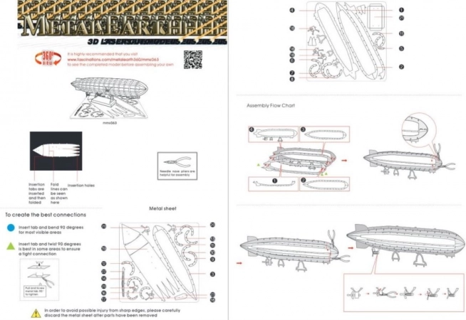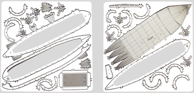 Paket sadrži dvije čelične ploče s dijelovima izrezanim laserskim gravurama i uputstva za slaganje. Alati nisu dio paketa. Za sastavljanje dijelova potrebne su male kliješta i tanke klešta. Preporučeno za modelare starije od 14 godina.