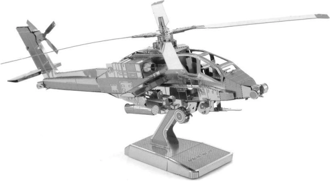 Izradite vlastiti 3D model helikoptera AH-64 Apache koji će postati izvrsna dekoracija doma, ureda ili učionice. Metal Earth 3D puzzle poznat je po preciznosti i detaljnosti zahvaljujući laserskom graviranju. Od čeličnih pločica dimenzija 11 x 11 cm sastavit ćete fascinantnu minijaturu slavnog američkog borbenog helikoptera koji se koristi od kraja Hladnog rata do danas.