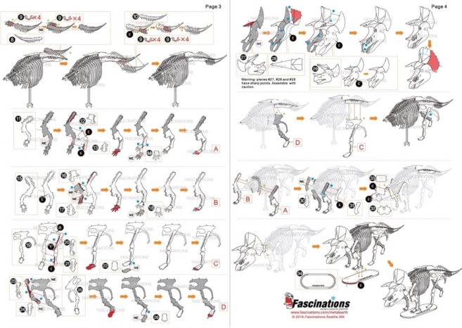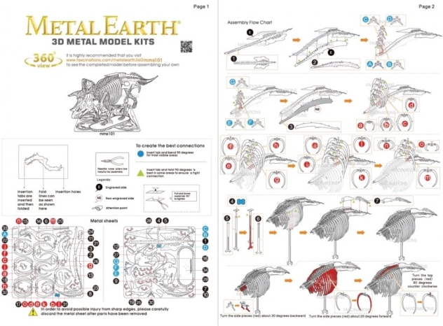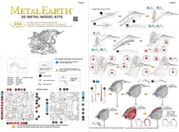 Pojedine dijelove izvadite iz metalnih pločica; po potrebi upotrijebite male kliješta-štipačice (nisu uključene). Dijelovi se međusobno spajaju pomoću zasuna koji se sastoje od jezička (kukice) i otvora. Jezičak savijte pomoću malih tankih kliješta (nisu uključena) i postupno spojite sve zasune dok ne nastane vrlo realistično remek-djelo!