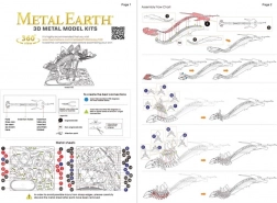 Pojedine dijelove izvadite iz metalnih pločica; po potrebi upotrijebite male kliješta za rezanje (nisu uključena). Dijelovi se spajaju pomoću zasuna koji se sastoje od jezička i otvora. Jezičak savijte pomoću malih, tankih kliješta (nisu uključena) i postupno spojite sve zasune dok ne dobijete vrlo realističan majstorski uradak!