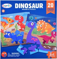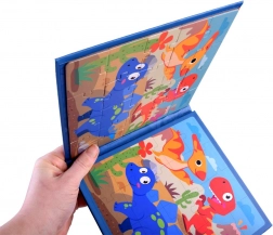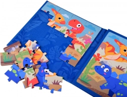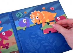 Zabavna magnetička knjižica s puzzlama na temu dinosaurâ nudi dvije šarene scene po 20 dijelova. Zahvaljujući magnetnim stranicama dijelovi dobro prianjaju, pa je slaganje ugodno i kod kuće i na putu. Razvija finu motoriku, logičko razmišljanje i koordinaciju ruka–oko.