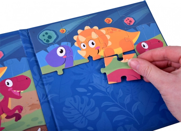 Ova kompaktna magnetička knjižica donosi djeci sate kreativne zabave. Unutra se nalaze dvije magnetne ploče s veselim dinosaurima, uz koje ide po 20 čvrstih dijelova. Magnetna podloga sprječava klizanje, pa se puzzle ne rasipaju ni pri nenamjernom pomaku.