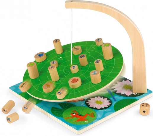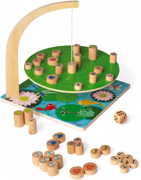 Čijim će se životinjicama na lokvanju najdulje uspjeti zadržati ravnoteža? Lokvanj je društvena igra za usavršavanje vještina i fine motorike. Kako biste preživjeli u ribnjaku, morate djelovati spretno i strateški! Postavite figurice sa životinjama na lokvanj tako da se ne prevrne. Cilj igre je da životinjice ne padnu s lokvanja. Pakiranje sadrži drvenu osnovnu ploču s visećim lokvanjem, 42 drvene igraće figurice sa životinjama i 1 drvenu igraću kocku. Činjenica da ploča nije potpuno ravna nema nikakav utjecaj na igrivost proizvoda. Mali savjet: što pažljivije postavite figuricu životinjice, to ćete manje zaljuljati lokvanj. Igra razvija: - spretnost i finu motoriku - strateško razmišljanje - koncentraciju. Prikladno za djecu od 6 godina.