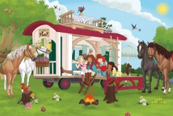 Uronite u svijet SCHLEICH s kolorističnim puzzlama brenda SCHMIDT koje dočaravaju atmosferu logorske vatre kod kamp-prikolice. Zahvaljujući 100 precizno izrezanih dijelova, slaganje je zabavno i razvija finu motoriku, strpljenje i maštu. Dio pakiranja je i originalna figurica hanoverskog ždrijebeta Schleich, koja će razveseliti svakog malog ljubitelja konja.