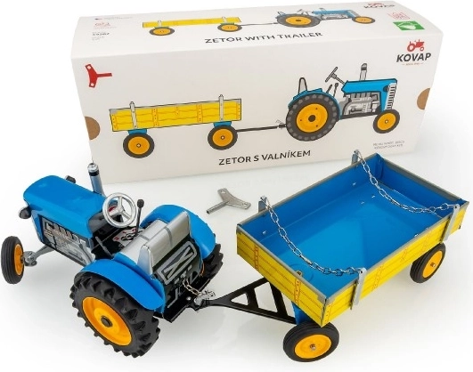 Legendarni češki klasik za male i velike entuzijaste. Metalni traktor ZETOR s funkcionalnim opružnim mehanizmom na ključ donosi realističan doživljaj vožnje – tri brzine naprijed, neutral i rikverc, uz precizno upravljanje volanom i ručnu kočnicu za sigurno zaustavljanje. Dio kompleta je i stilski usklađena prikolica s preklopnom stražnjom stranicom za utovar i istovar.