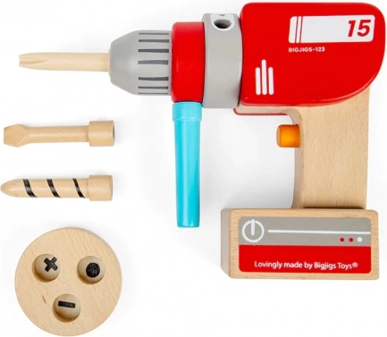 Dječja drvena bušilica BIGJIGS TOYS sigurna je i realistična igračka za male majstore. Nudi ručno okretanje, magnetske nastavke i vijke te klikajući gumb za uključivanje/isključivanje. Potiče finu motoriku, kreativnost i koordinaciju oko–ruka zahvaljujući privlačnom dizajnu i kvalitetnoj izradi od odgovorno dobivenog drva.