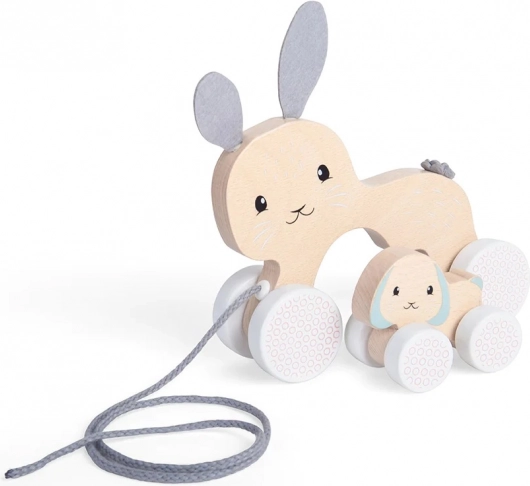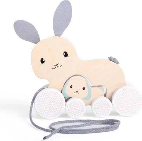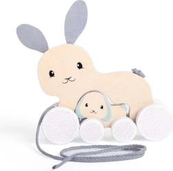 Ovaj šarmantni zeko na povlačenje sa skrivenim mladuncem idealan je pratitelj za prve pustolovine po stanu. Zahvaljujući kvalitetnoj izradi od održivo dobivenog FSC® drva i bojama sigurnima za djecu, igra je ne samo zabavna nego i sigurna. Meke filcane uši i repić daju igrački dražestan izgled i ugodnu taktilnu stimulaciju.
