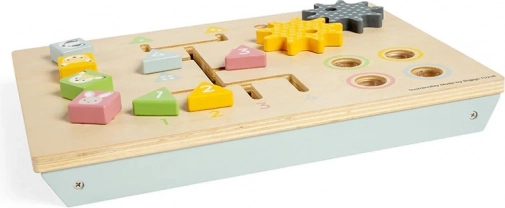 Ovaj multifunkcionalni drveni radni stol idealna je edukativna igračka za djecu od 1 godine. Zahvaljujući promišljenom dizajnu i čvrstim nogama siguran je i stabilan, dok raznolike aktivnosti motiviraju djecu na istraživanje, strpljenje i koncentraciju. Prirodan izgled s pastelnim bojama privlačan je i skladno se uklapa u dječju sobu.