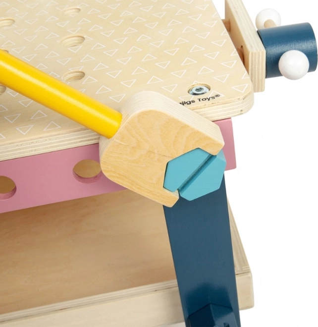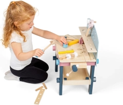 Dječji radni stol BIGJIGS TOYS donosi sigurnu i poticajnu radionicu za male majstore. Robusna drvena konstrukcija, pregledni prostori za odlaganje i raznolik set alata pozivaju na otkrivanje osnova rada s alatom i maštovito građenje.