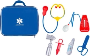 Ovaj doktorski set idealan je za sve male zaljubljenike u medicinu koji žele brinuti o svojim „pacijentima“. Pakiranje sadrži sedam osnovnih medicinskih alata koji igru čine posebno zanimljivom i interaktivnom:
