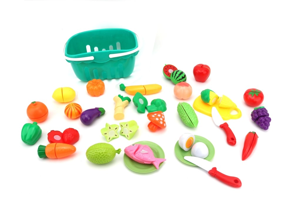 Voće, povrće i druge namirnice dijele se i ponovno spajaju, pa ih djeca mogu „rezati” i slagati, vježbajući hvat i koordinaciju.
