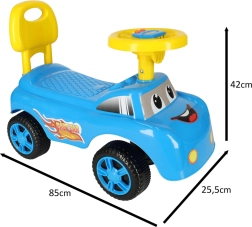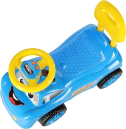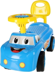 Preslatka plava guralica s osmijehom sprijeda potiče motoriku, ravnotežu i sigurnost pri prvim vožnjama. Zahvaljujući maloj težini lako se prenosi, a dijete ju bez napora kontrolira. Truba na volanu daje vožnji realistične auto-doživljaje.