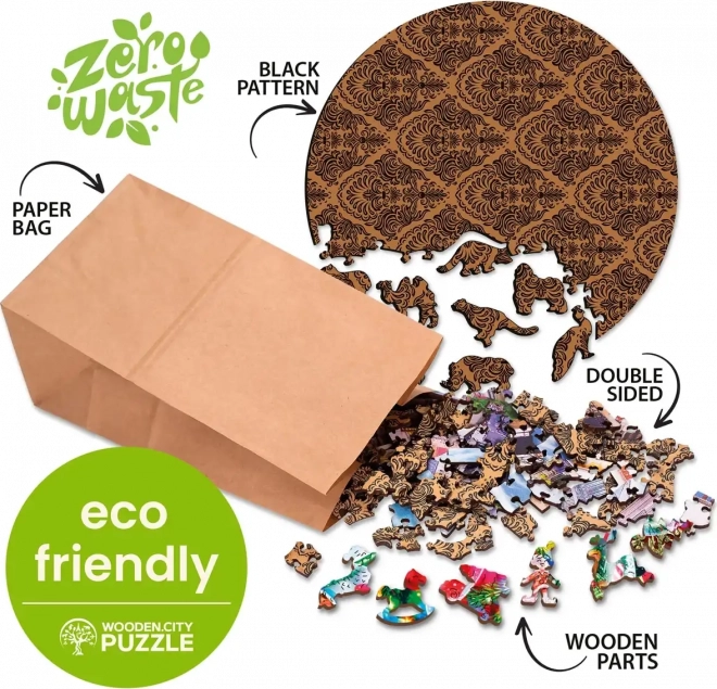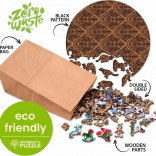 Slagalica WOODEN CITY se razlikuje po svojim visokim zahtjevima zahvaljujući različito oblikovanim dijelovima, što pojačava doživljaj slaganja. Puzzle su izrađene od čvrste vlaknaste HDF ploče, što osigurava glatke rubove bez iverja zahvaljujući preciznoj laserskoj obradi.