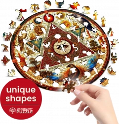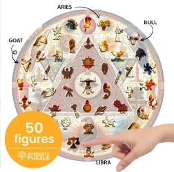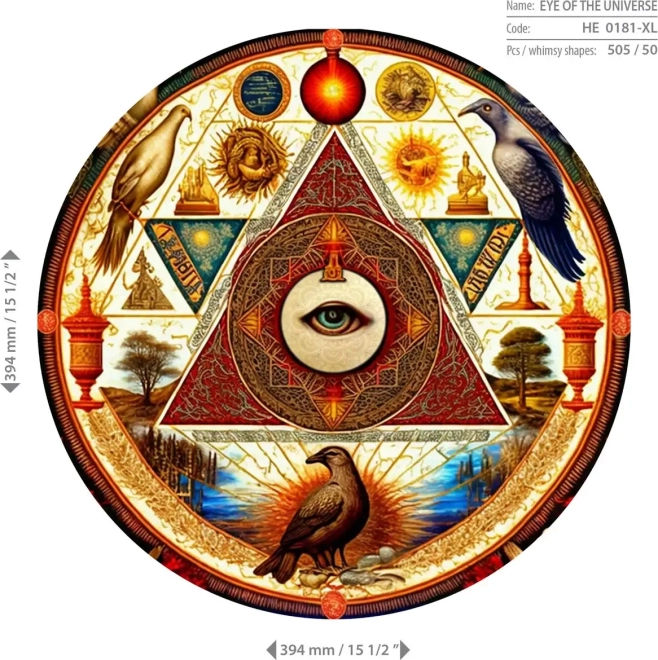 Priuštite si jedinstveno iskustvo slaganja umjetničkog motiva Oko svemira. Dijelovi od čvrste HDF ploče debljine 3–4 mm precizno su laserski rezani, zbog čega se ističu čistim, glatkim rubovima bez iverja i detaljnom teksturom. Dio dijelova jedinstveno je oblikovan u likove životinja, koje se mogu samostalno postaviti kao male figurice.