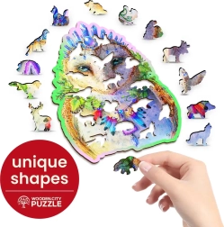 Drvene puzzle Lijepa sova od WOODEN CITY nude beskrajnu zabavu sa svojim jedinstveno oblikovanim dijelovima. Slažite i otkrivajte s dijelovima u obliku životinja, koji mogu stajati kao samostalne figurice.