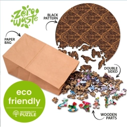 Puzzle WOODEN CITY poznate su po posebno oblikovanim dijelovima koji igračima pružaju užitak kombinacije klasike i inovacije. Zahvaljujući laserskoj obradi ističu se detalji koji povećavaju estetsku vrijednost cijele slike.