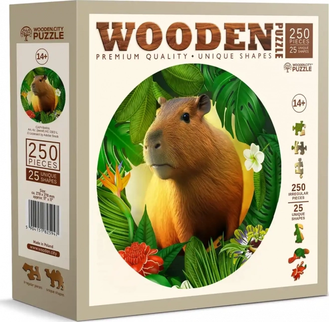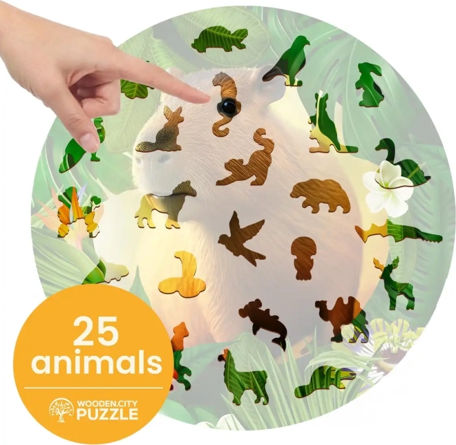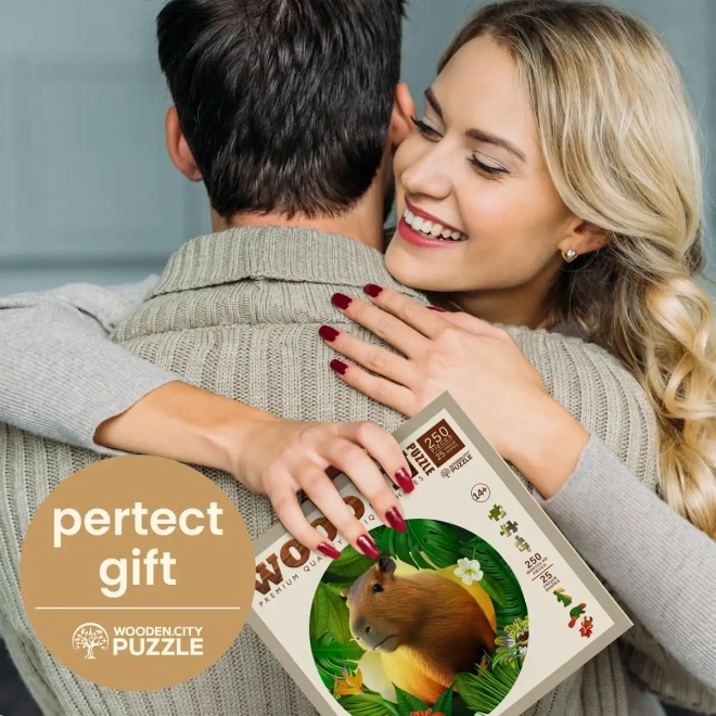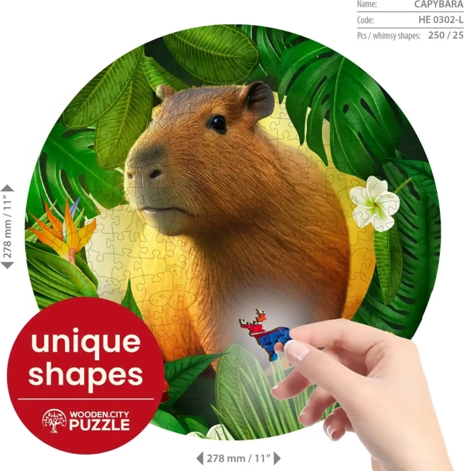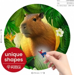 Drvene puzzle WOODEN CITY s motivom kapibare donose jedinstveno iskustvo slaganja. Posebno oblikovani dijelovi, od kojih je dio u obliku životinja, oduševit će svakog ljubitelja originalnih puzzli. Laserom naglašeni detalji daju slici dubinu, a pojedini oblikovani dijelovi mogu samostalno stajati kao male figurice.