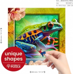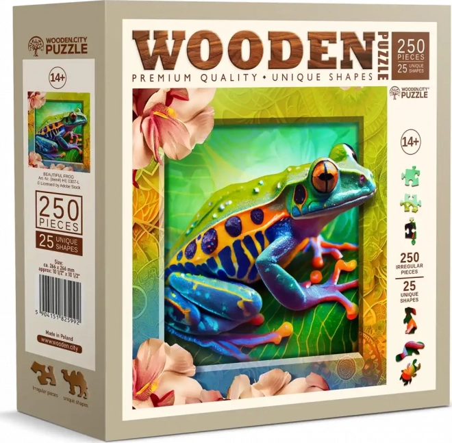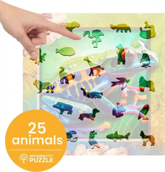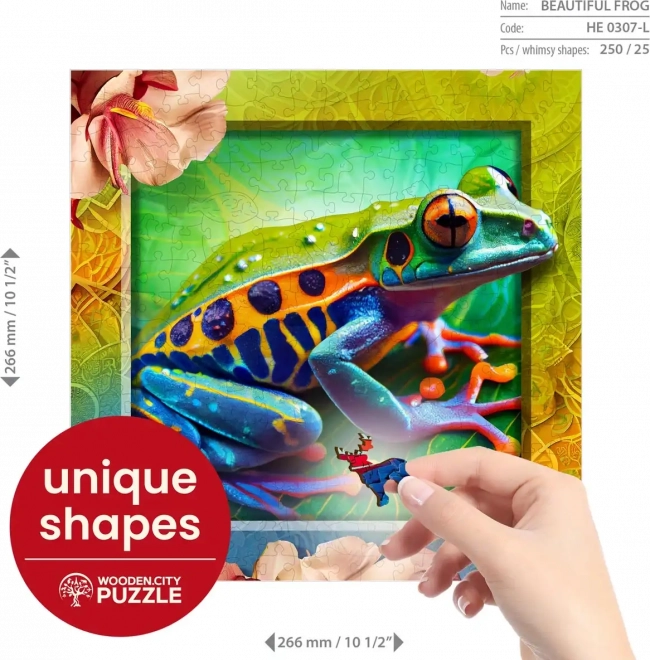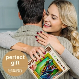 Otkrijte privlačan način slaganja s WOODEN CITY drvenim puzzlama Šarena žabica. Dijelovi su precizno oblikovani laserom kako bi stvorili jedinstvene životinjske oblike koji mogu poslužiti kao samostalne mini figurice.