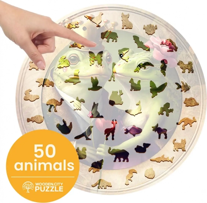 Drvene puzzle Ljubav i žabe od WOODEN CITY jedinstven su set s laserom izrezanim dijelovima. Ovaj komplet nudi vrlo zabavno iskustvo slaganja s dijelovima u obliku životinja koji mogu stajati kao male figurice.