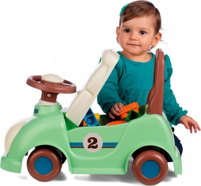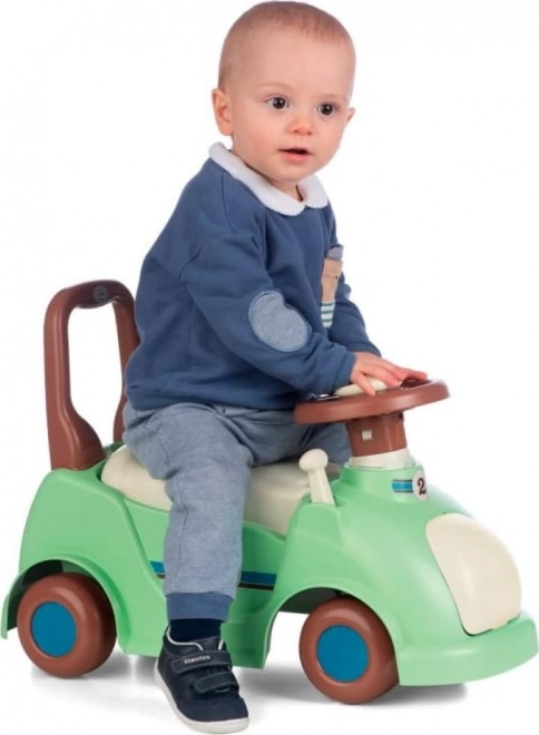 Funkcija zaštitnih izboja koji sprječavaju prevrtanje naprijed i natrag dodatno povećava sigurnost. Zahvaljujući prostoru za pohranu ispod sjedala djeca mogu lako prevoziti svoje omiljene igračke. Dimenzije guralice su 26 x 54,5 x 38,5 cm, što osigurava udobnu upotrebu za većinu djece.