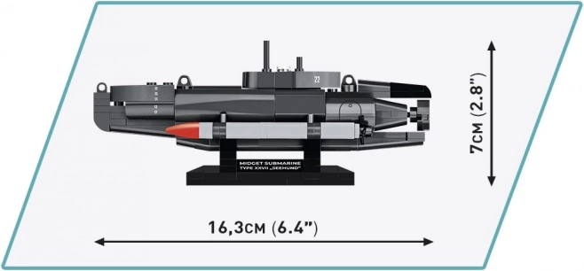 COBI U-Boat Seehund (Tip XXVII) u mjerilu 1:72. 181 dio, trajni otisci, postolje i pločica s imenom. Povijesni kolekcionarski set proizveden u EU.