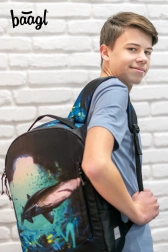 Otkrijte udobnost i održivi stil s ruksakom BAAGL eARTh – Morski pas by LUKERO. Zahvaljujući vodootpornom, 100% recikliranom materijalu vaša će oprema ostati sigurna po svakom vremenu, dok upečatljiva grafika s motivom morskog psa privlači pogled na prvi pogled.