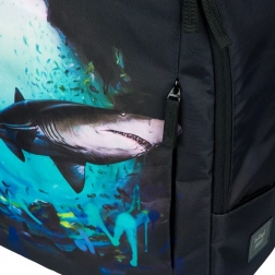 Stilski gradski ruksak od 100% recikliranog vodootpornog materijala s motivom morskog psa od LUKERO. Nudi ergonomski oblikovana leđa, laganu konstrukciju (500 g), kapacitet 18 l i džep za 15" prijenosno računalo. Idealan za svakodnevno nošenje u školu, na posao i u slobodno vrijeme.