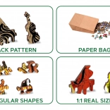 Obostrano izvedenje 2u1 omogućuje slaganje prema slici na licu ili prema ponavljajućem uzorku na naličju – idealno za ljubitelje izazova. Puzzle su pakirane potpuno bez plastike u papirnatoj vrećici i kutiji, a unutra ćete naći i zasebnu predložak za udobno slaganje.
