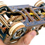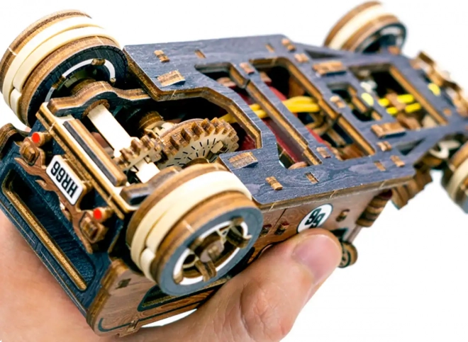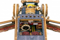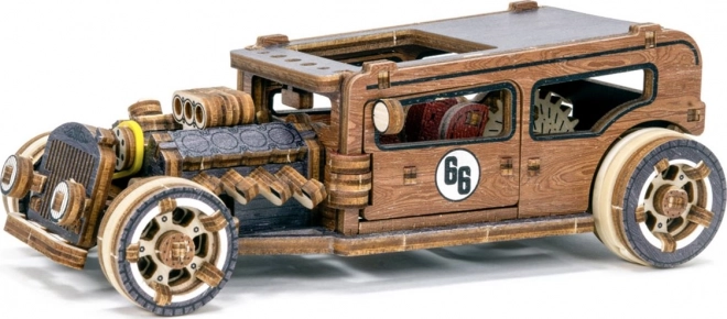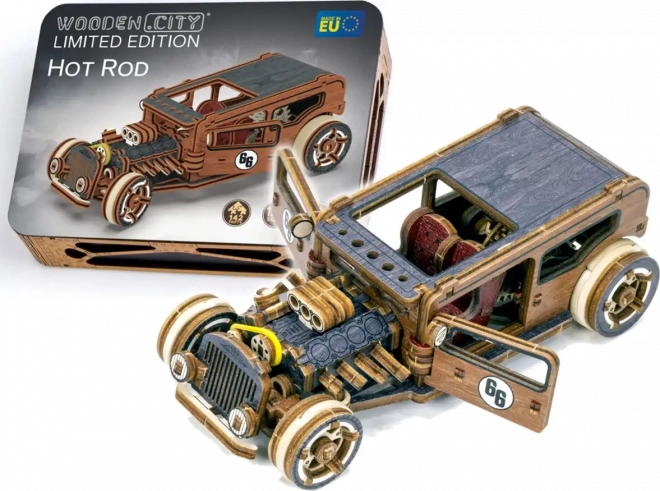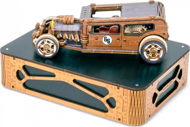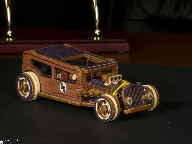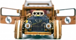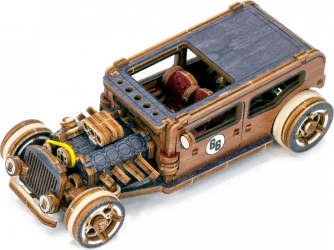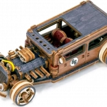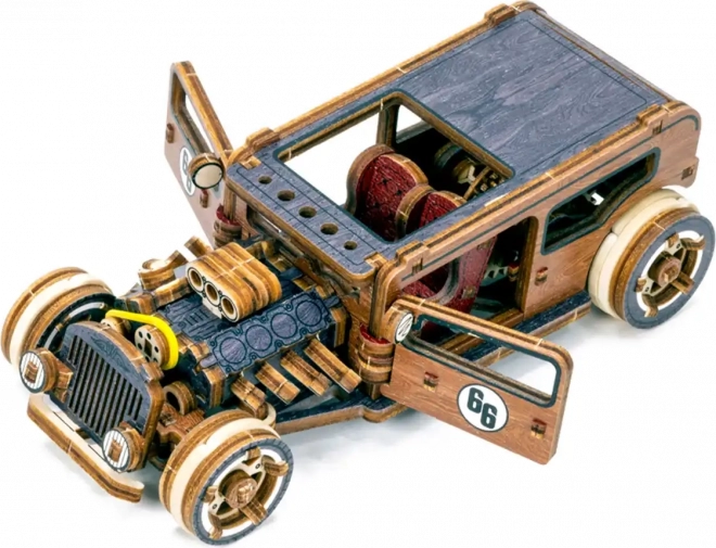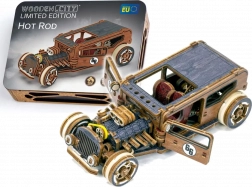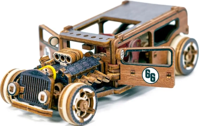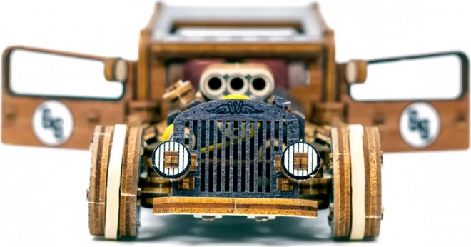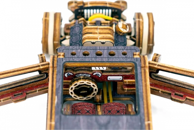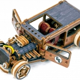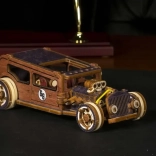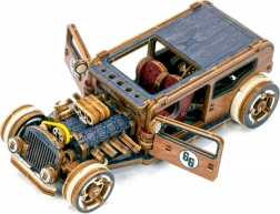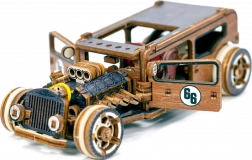 Ovaj mehanički model WOODEN CITY hot roda u mjerilu 1:32 donosi autentičan doživljaj gradnje i mehanike. Unutra ćete pronaći detaljan motor, dvostruko sjedalo i ručicu mjenjača, a pri vožnji ćete cijeniti pogon sa zamašnjakom i povratne kotače. Zahvaljujući preciznom izrezu dijelova iz brezove šperploče sve savršeno pristaje – bez kapi ljepila.