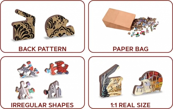 Otkrijte zabavu s premium drvenim puzzlama WOODEN CITY s motivom povijesne glavne ulice. Zahvaljujući jedinstveno oblikovanim dijelovima (životinje, građevine, predmeti), dvostranom izvedbom 2u1 i preciznom laserskom izrezivanju nude zahtjevnije i privlačnije slaganje. Osim toga, eko-friendly – bez plastične ambalaže.
